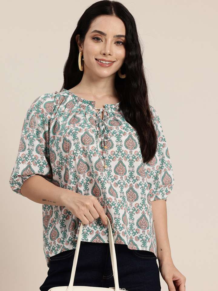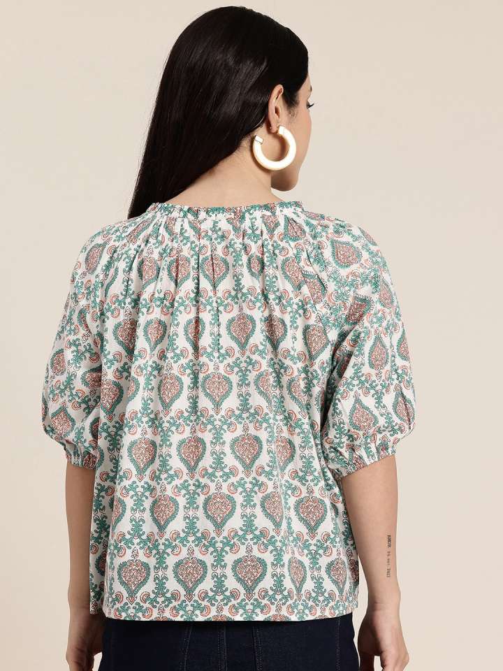 Ethnic Printed Raglan Sleeve Pure Cotton Top