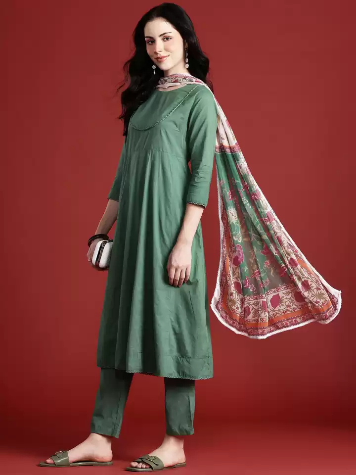 Panelled Kurta with Trousers & Dupatta