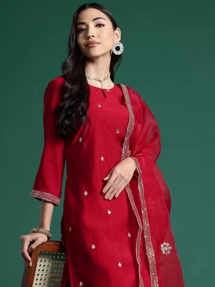 Women Floral Embroidered Regular Kurta With Palazzos & Dupatta
