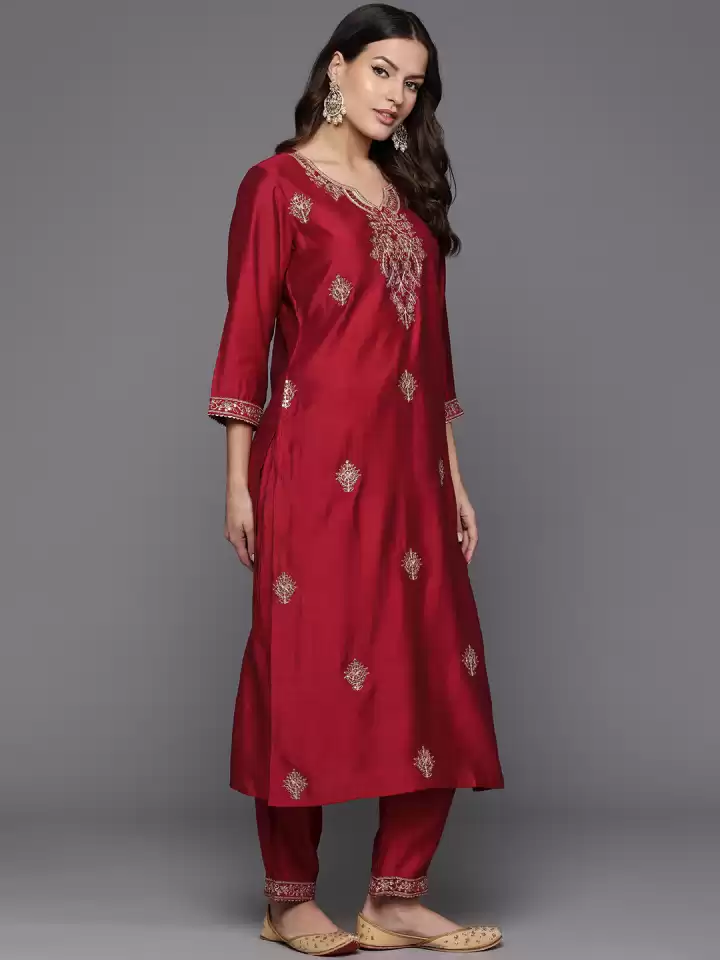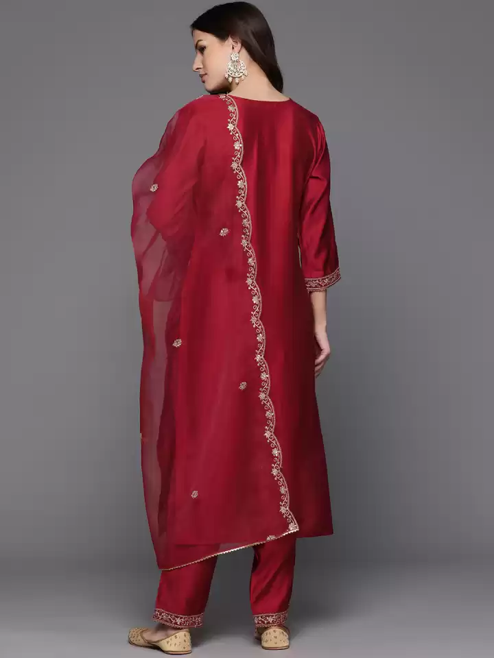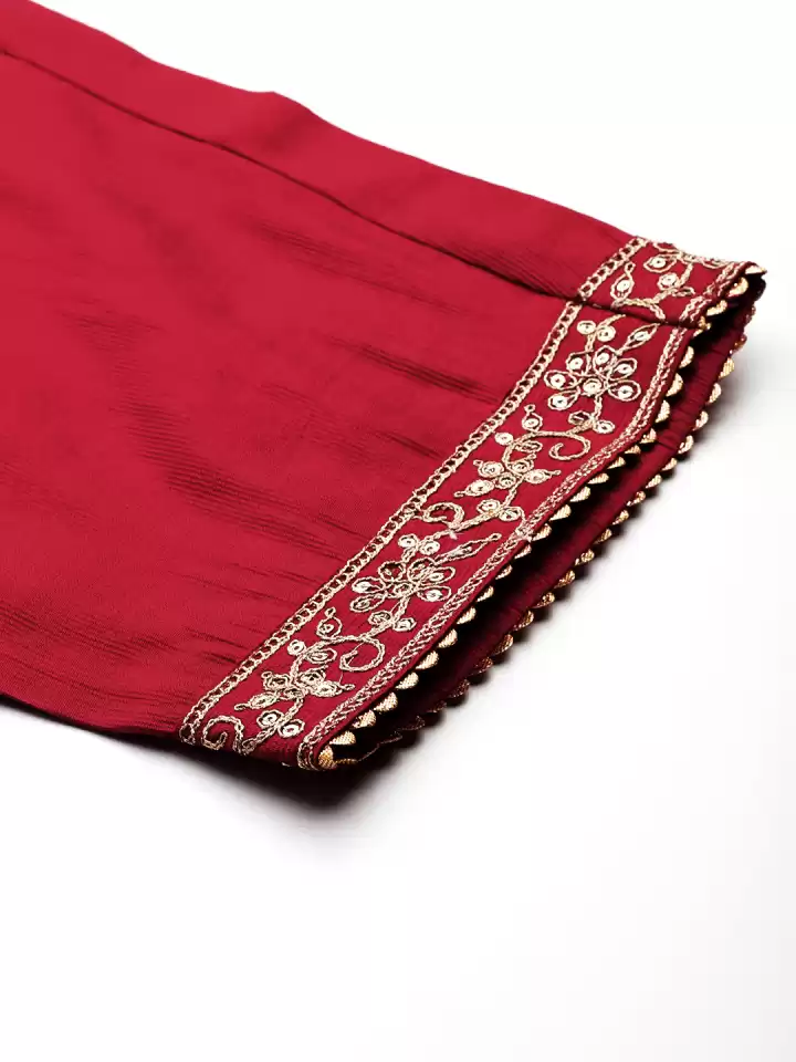 Red embroidered Kurta with Trousers with dupatta
