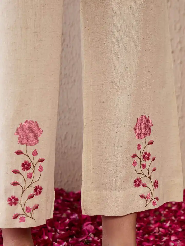 Women Floral Embroidered Regular Thread Work Pure Cotton Kurta with Palazzos