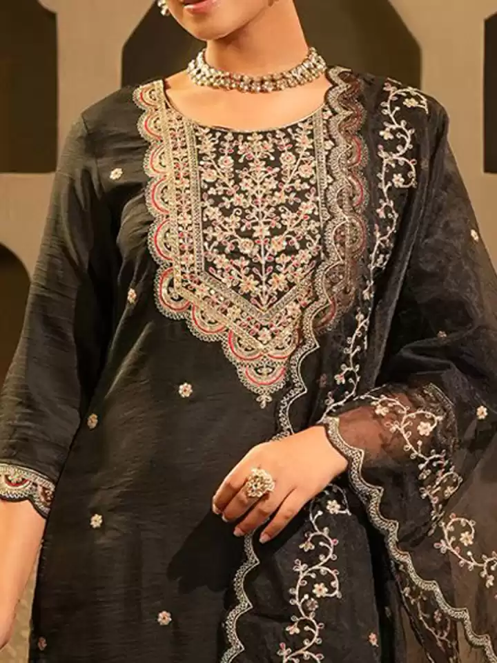 Ethnic Motifs Embroidered Kurta With Trousers & Dupatta