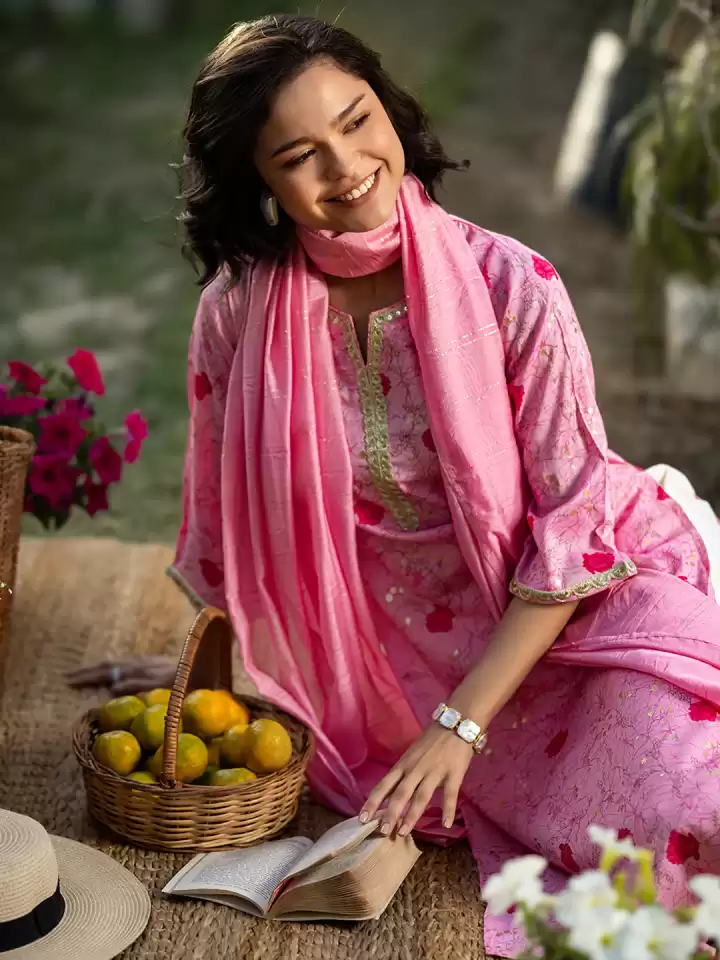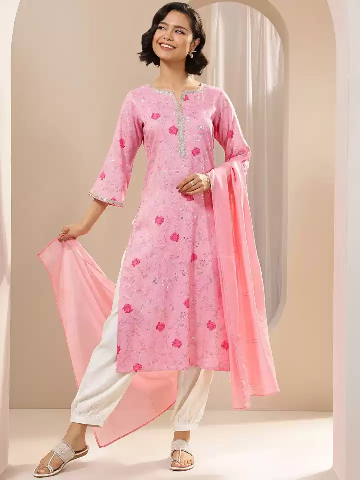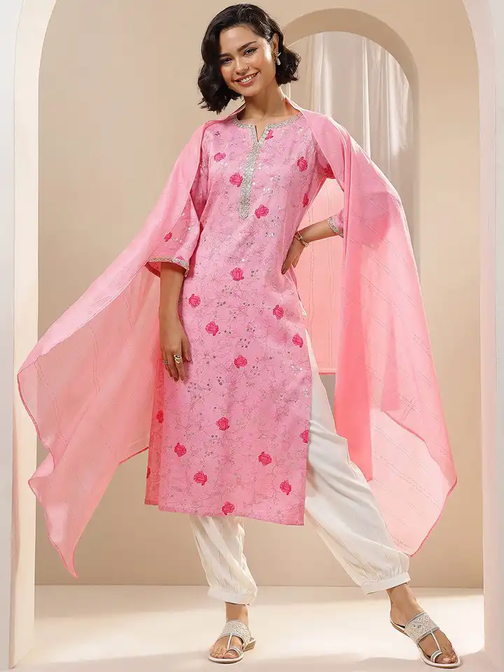 Women Floral Printed Regular Sequinned Kurta with Salwar & With Dupatta