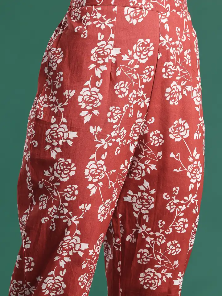 Floral Printed Regular Pure Cotton Kurta with Trousers & Dupatta