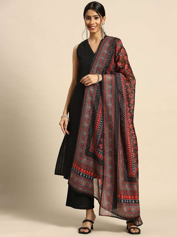Women Black Ethnic Motifs Pure Cotton Kurta with Palazzos & Dupatta