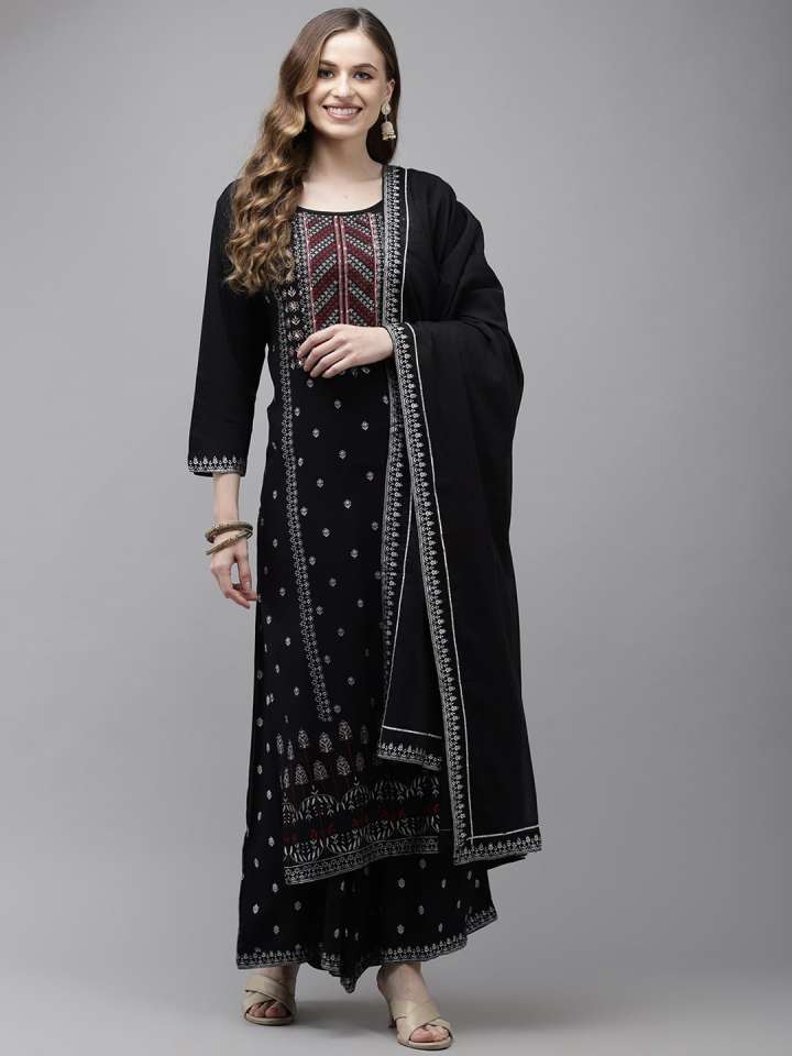 Floral Printed Beads and Stones Kurta with Palazzos & With Dupatta