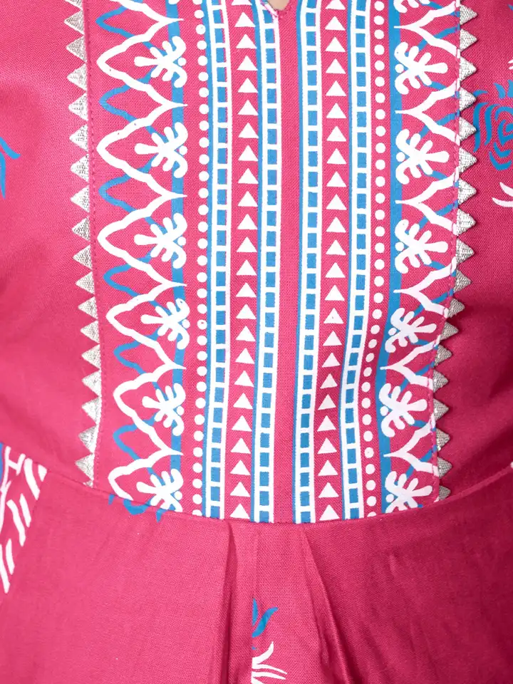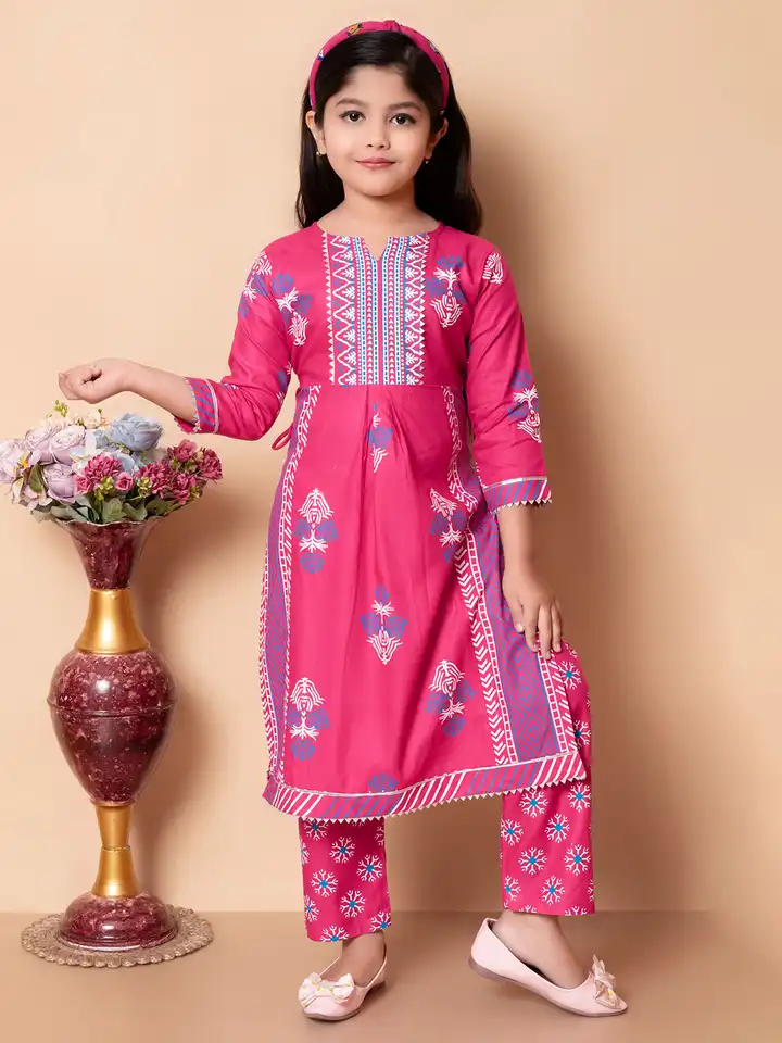 Girls Printed Calf Length Kurta Set