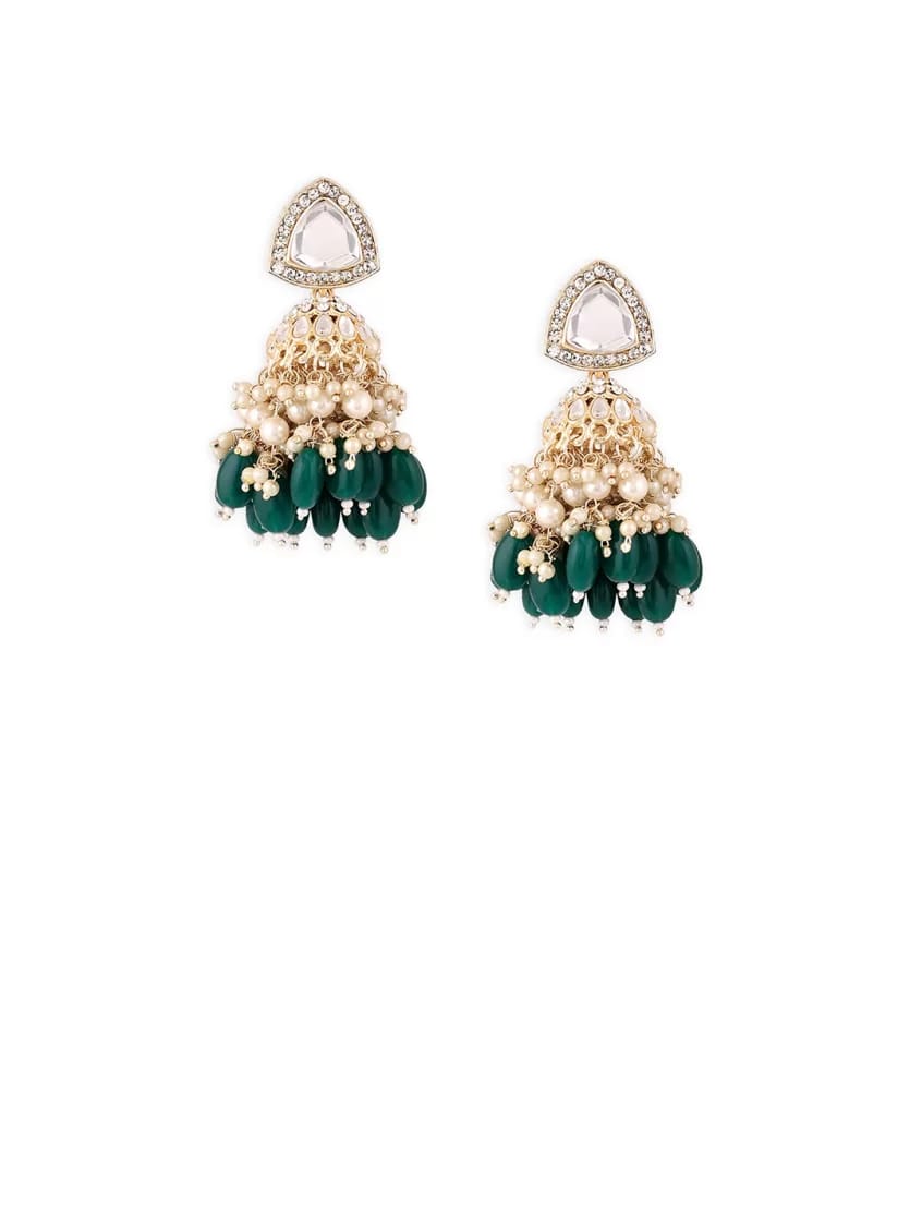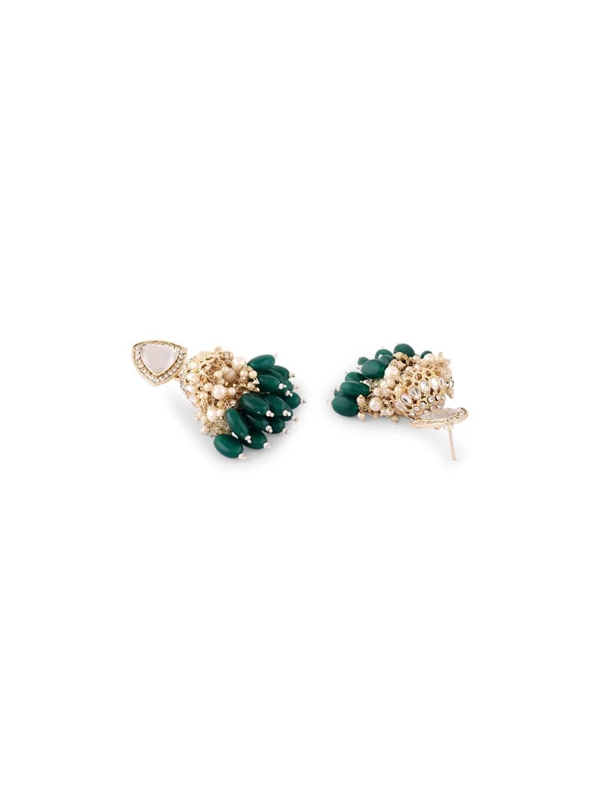 Gold-toned & green contemporary jhumkas, gold-plated, has kundan